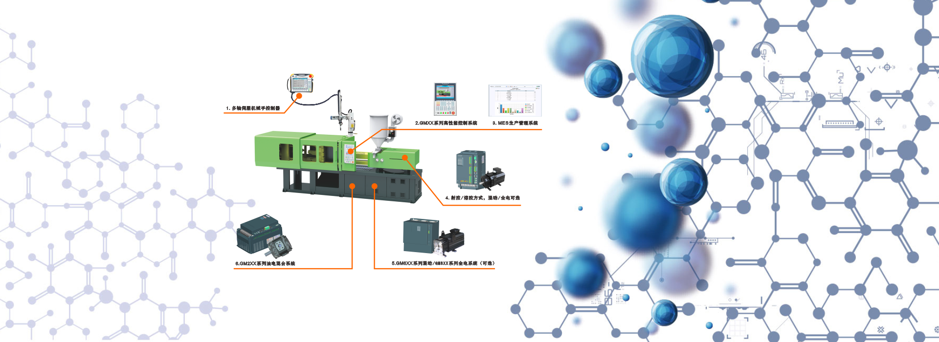 元智GM系列橡塑控制系統 元智GA系列機械手控制系統 元智GM系列全電動橡塑系統 MC系列橡塑控制系統 MES注塑車間管理系統
